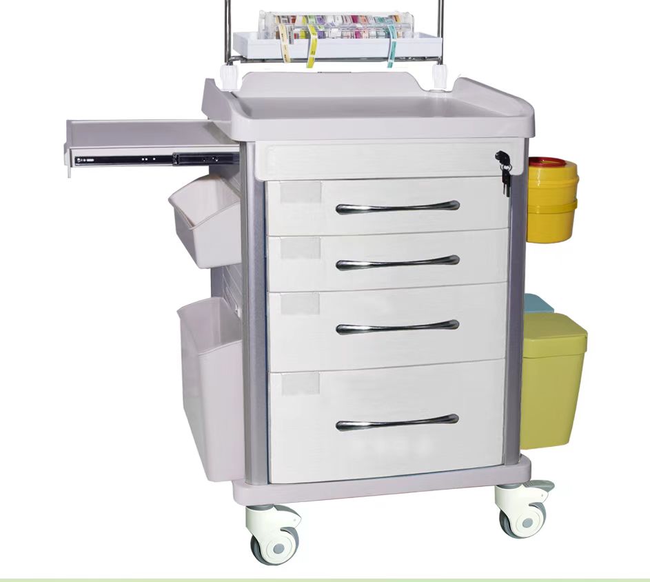 Four (4) swivel casters, diameter 125 mm, two with brakes.